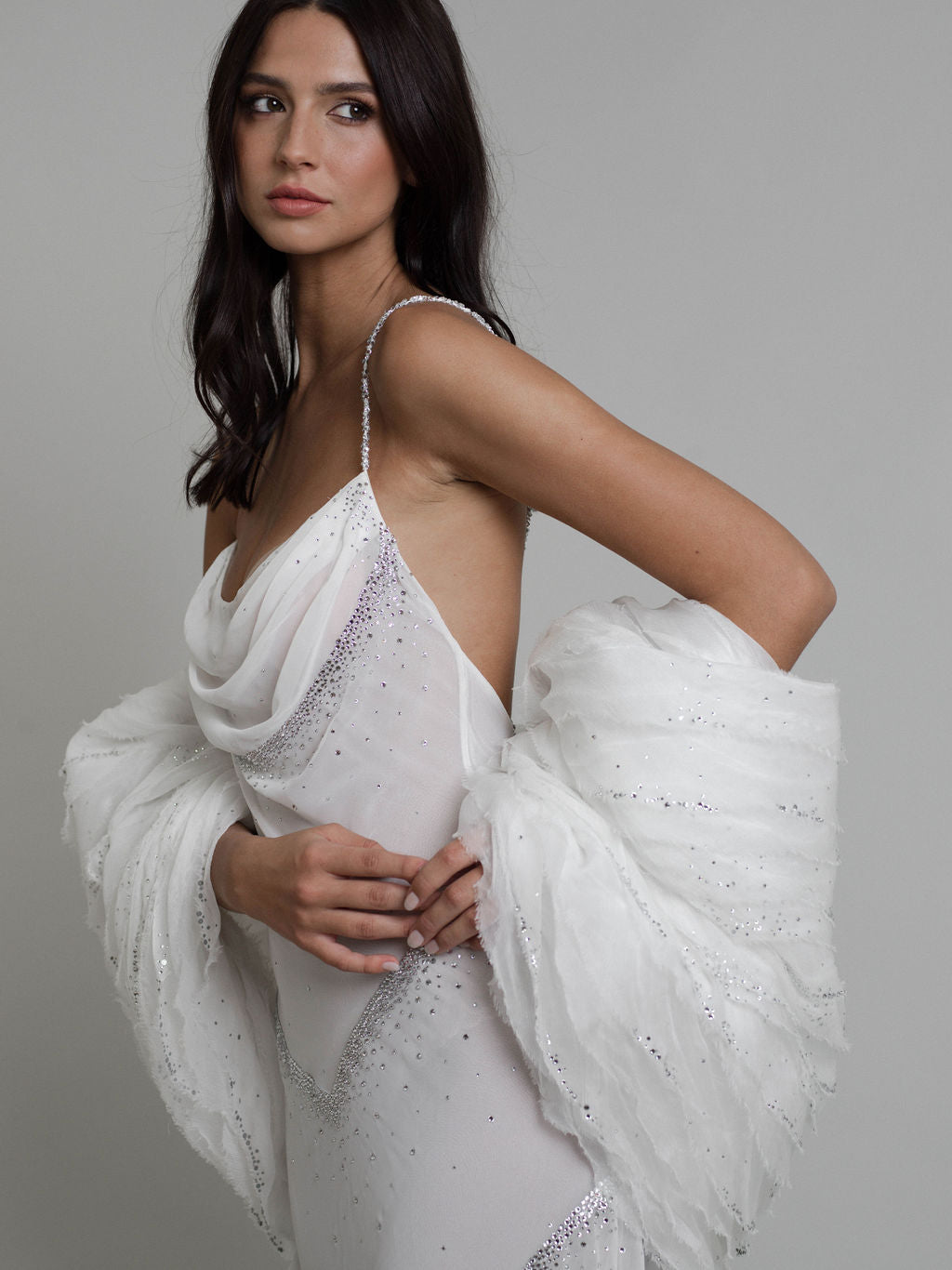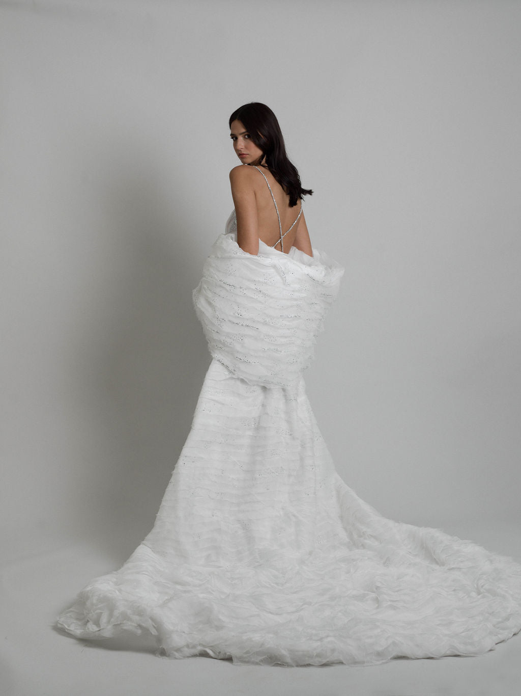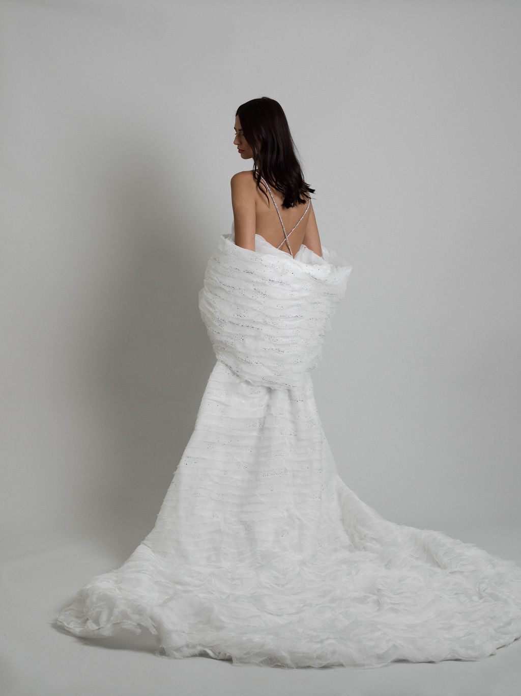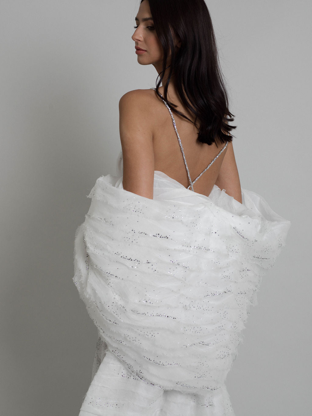 Enveloppez-vous de l’aura céleste d’un nuage étoilé avec la cape Nebula ! Cette pièce incontournable est parfaite pour sublimer votre tenue de tapis rouge ou venir délicatement draper votre robe de mariée.