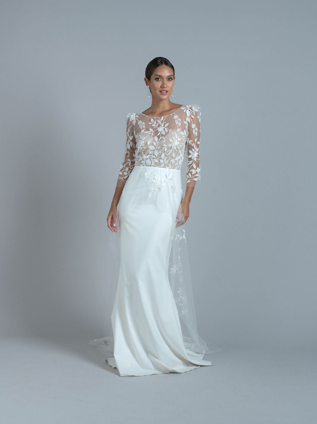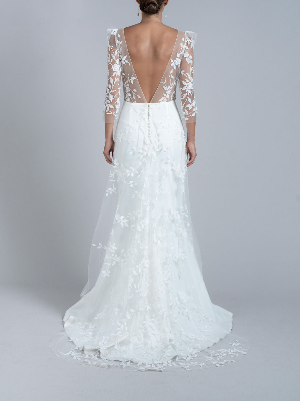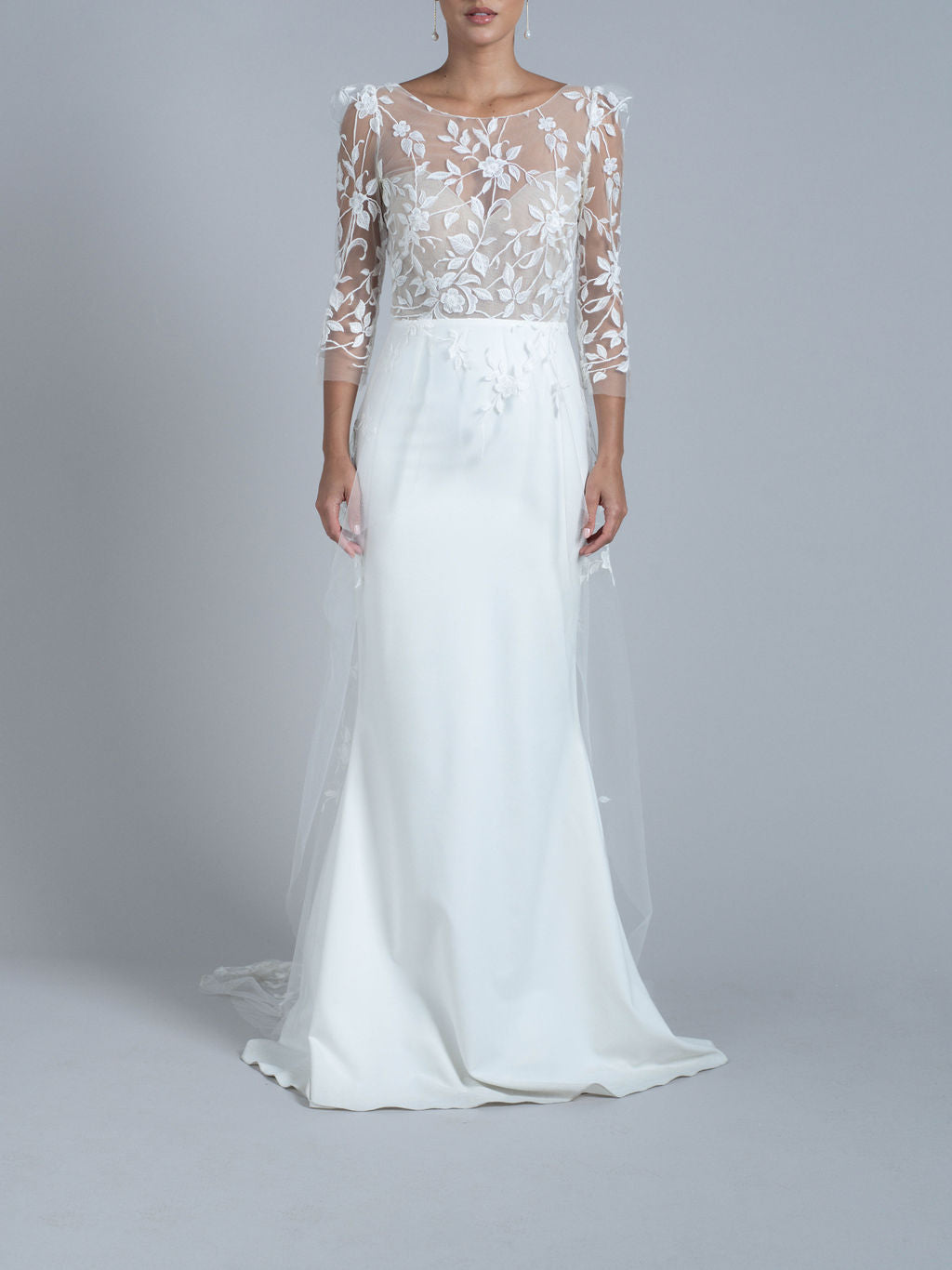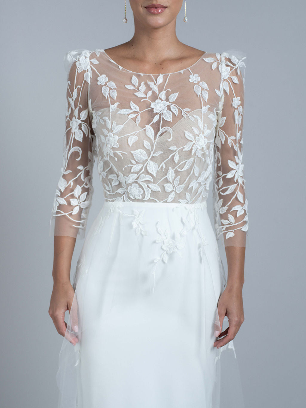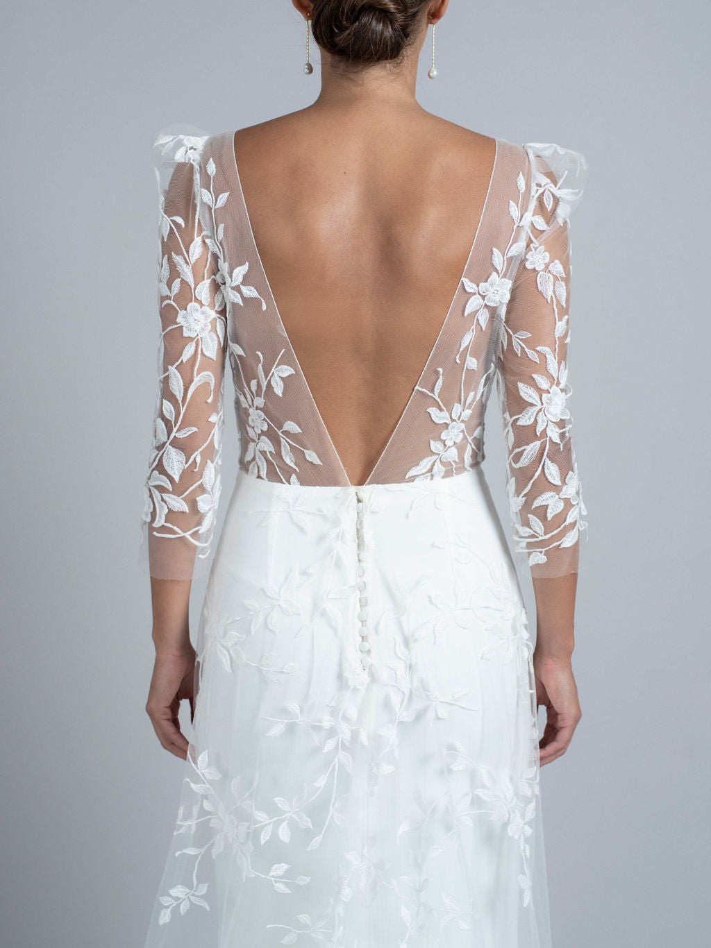 Top en tulle floral brodé, réalisé exclusivement en Italie pour notre Maison.
