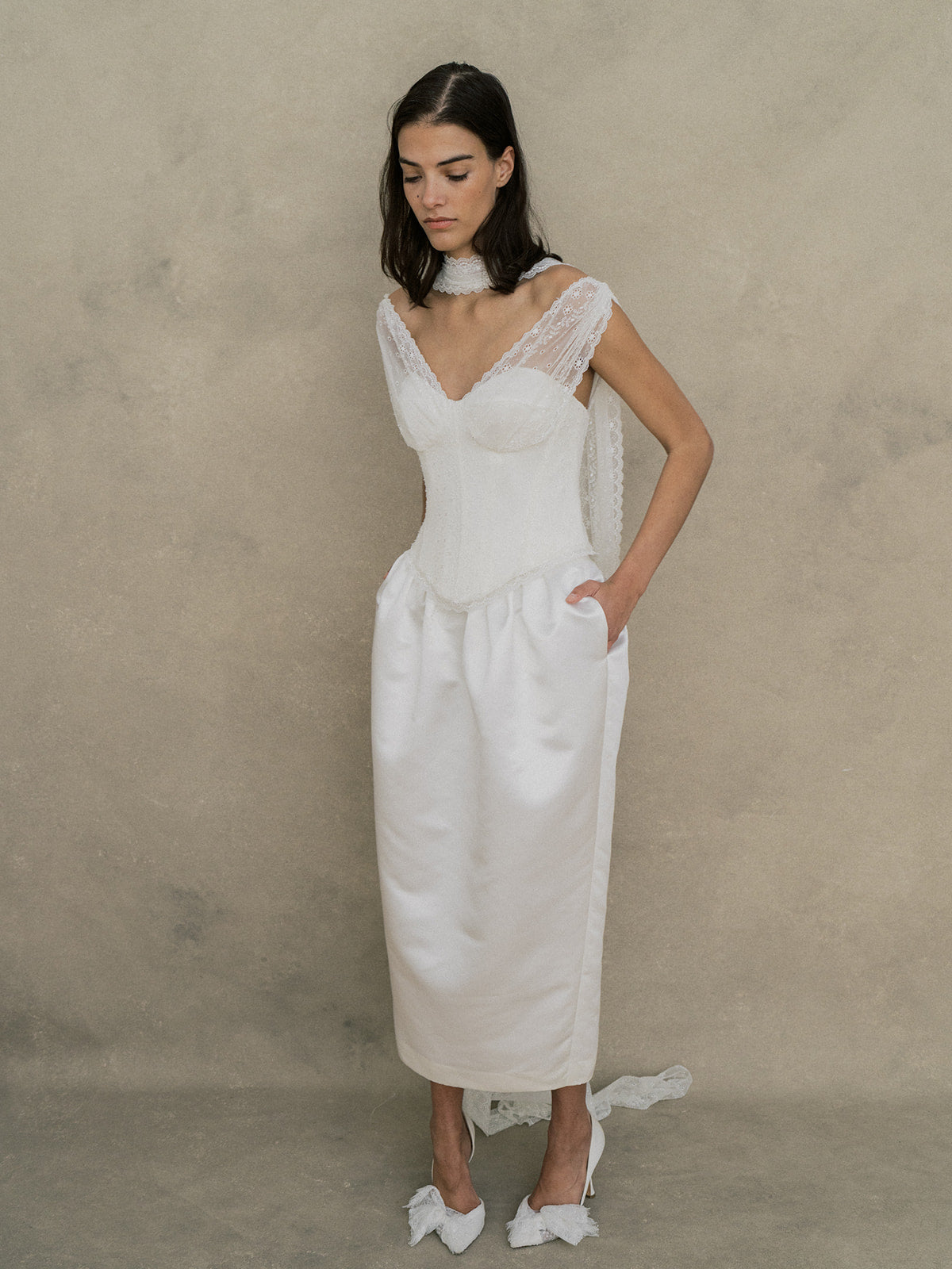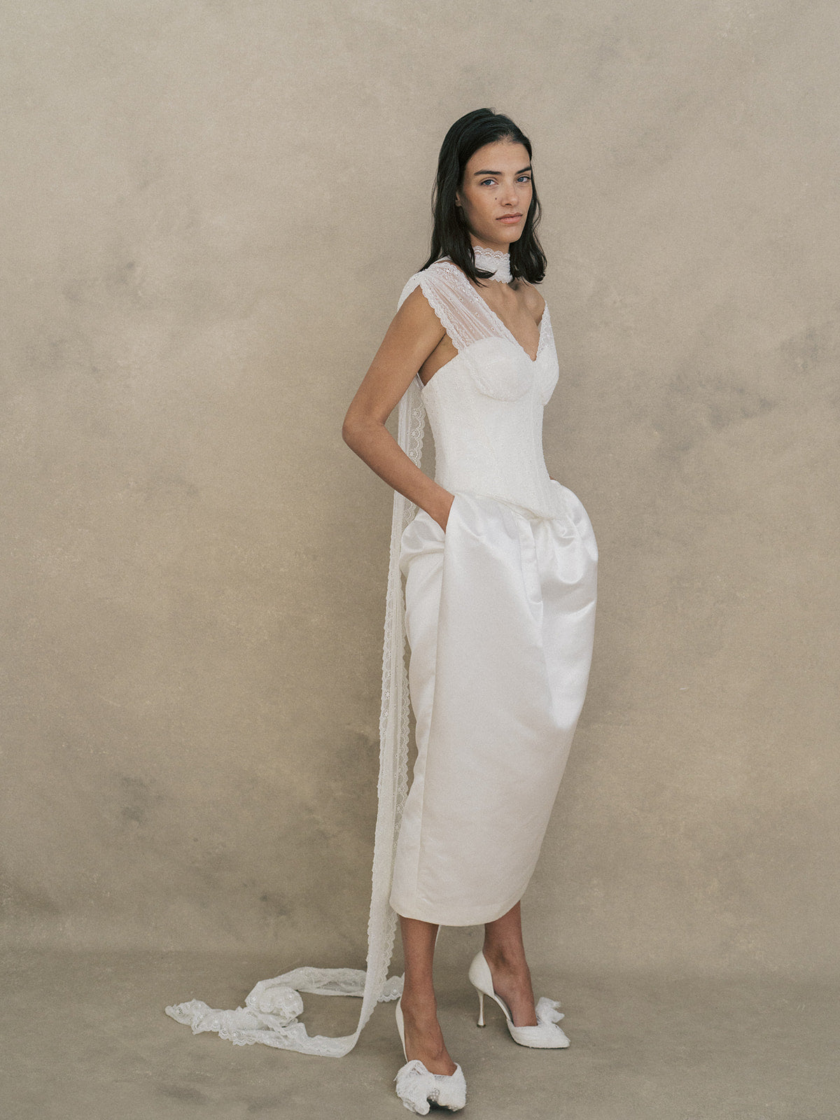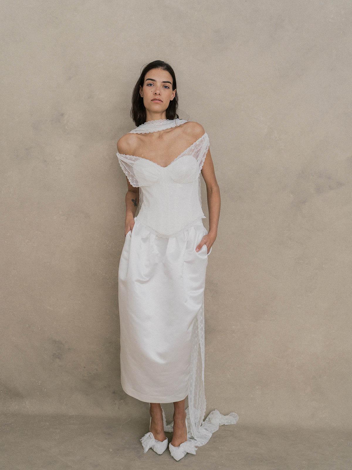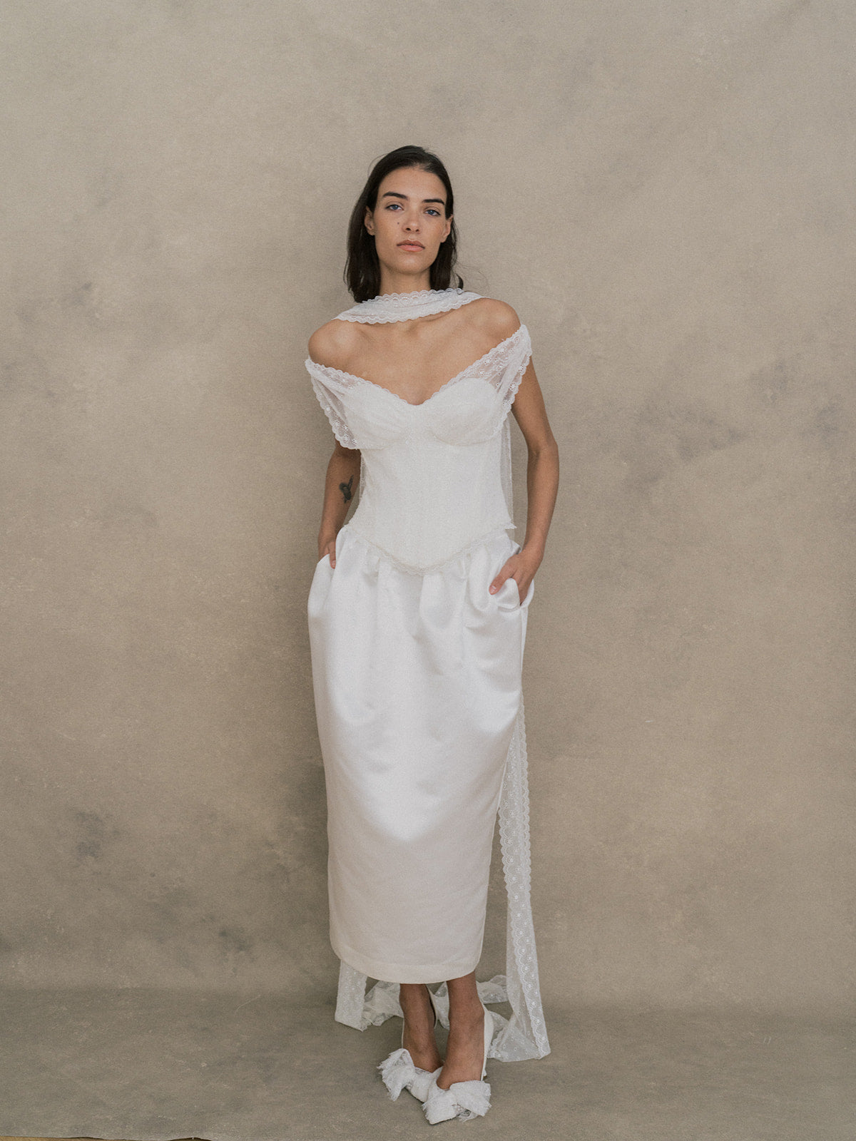 Fabriquée sur commande, avec un délai de production de 6 à 8 semaines. Jupe taille haute en satin à la silhouette tulipe. Des plis plats apportent une structure légère, soulignée par une ceinture structurée qui met en valeur la taille. Longueur cheville, elle est dotée d’une fermeture zippée discrète au dos et d’une fente subtile pour plus de fluidité