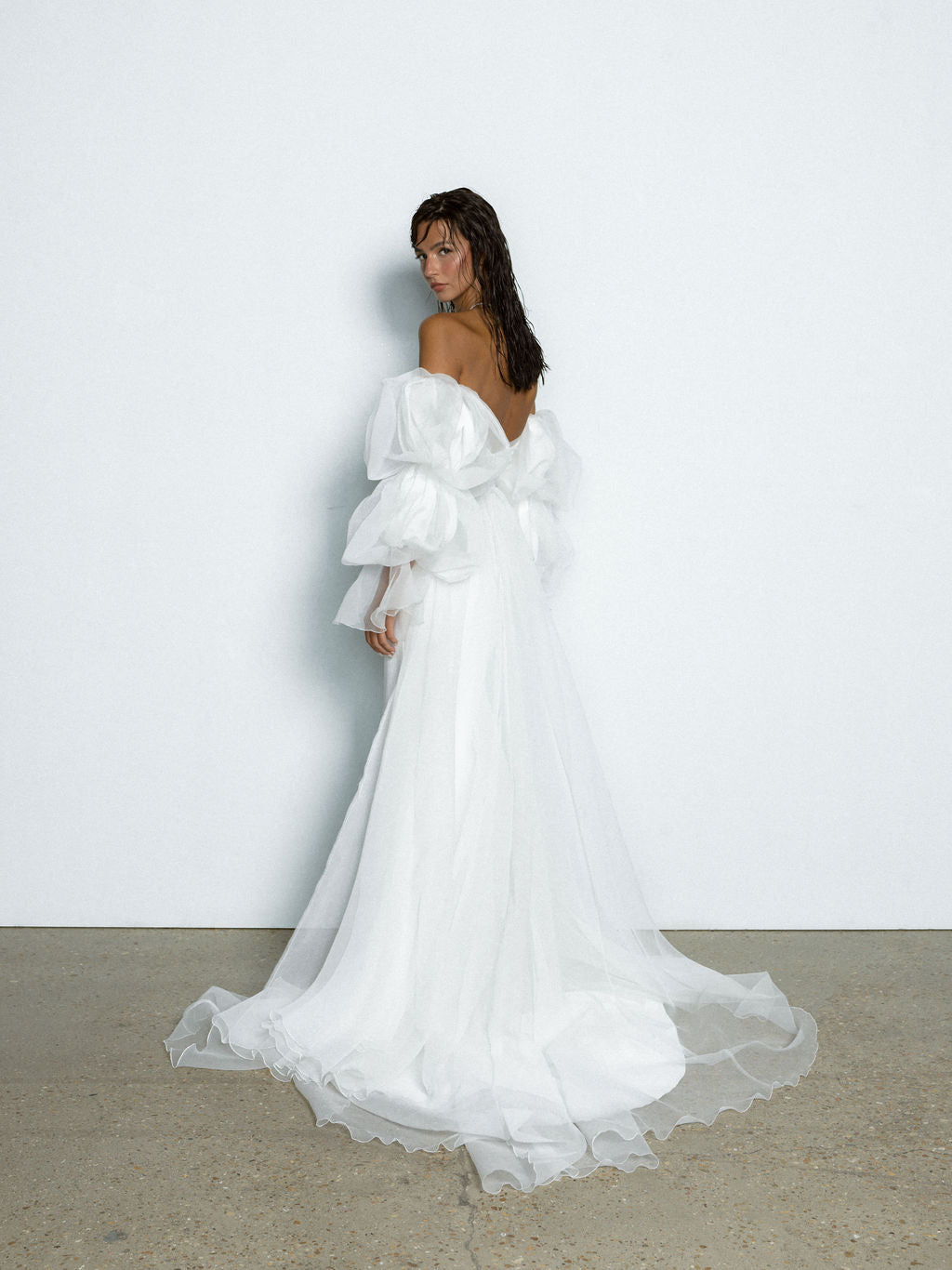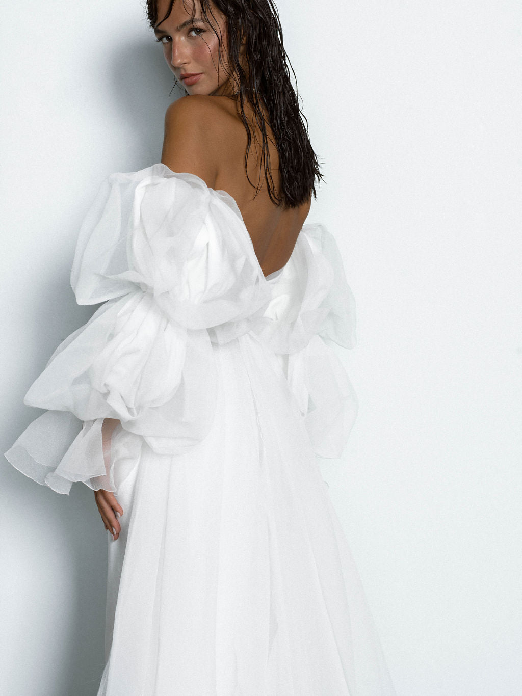 Tout droit sortie d’un rêve, la robe Sky incarne la beauté céleste. L’effet nuageux de ses manches et son tissu léger et velouté transforment chaque femme en un ange tombé du ciel.